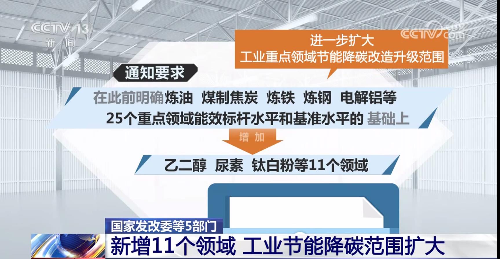 央視網(wǎng):新增11個(gè)領(lǐng)域 工業(yè)節(jié)能降碳范圍擴(kuò)大國(guó)家發(fā)改委等五部門發(fā)文通知,在原25個(gè)重點(diǎn)領(lǐng)域能效標(biāo)桿和基準(zhǔn)水平的基礎(chǔ)上,新增11個(gè)領(lǐng)域查看詳情>>