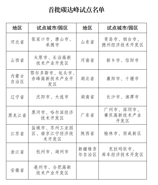 我國首批碳達(dá)峰試點(diǎn)名單公布國家發(fā)展改革委辦公廳關(guān)于印發(fā)首批碳達(dá)峰試點(diǎn)名單的通知發(fā)改辦環(huán)資〔2023〕942號各省、自治區(qū)、直轄市及計劃單列市、新疆生產(chǎn)建設(shè)兵團(tuán)發(fā)展改革委: 為落實(shí)國務(wù)院《2030年前碳達(dá)峰行動方案》(國發(fā)〔2021〕23號)有關(guān)部署,按照《國家碳達(dá)峰試點(diǎn)建設(shè)方案》(發(fā)改環(huán)資〔2023〕1409號)工作安排,經(jīng)有關(guān)地區(qū)城市和園區(qū)自愿申報、省級發(fā)展改革委推薦、省級人民政府審核、國家發(fā)展改革委復(fù)核,確定張家口市查看詳情>>